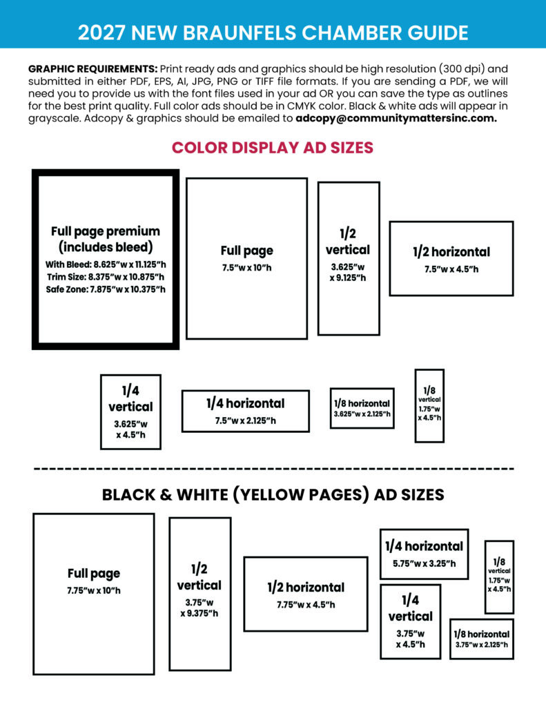 Ad space is very limited as fills up on a first come, first serve basis. Please follow one of the links on this page to reserve your ad space, or reach out to Community Matters, Inc. at
