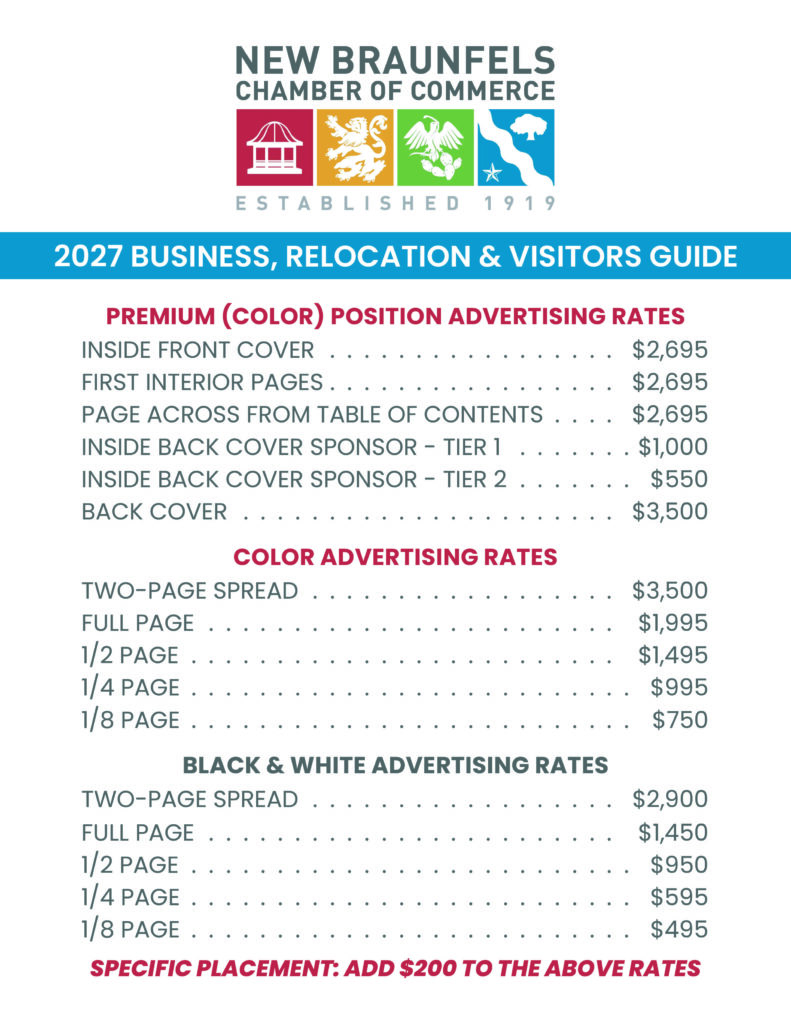 The New Braunfels Business, Relocation & Community Guide is a publication of the Greater New Braunfels Chamber of Commerce. The Chamber will this publication to promote the New Braunfels area in all of the areas that the Chamber is involved with including: